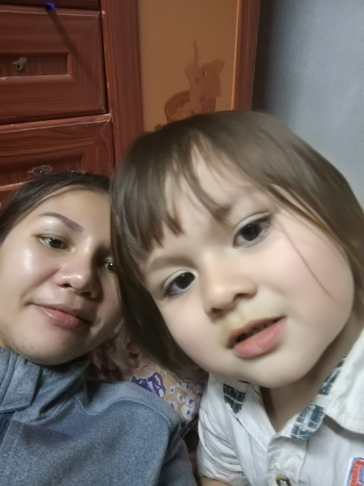 Jaidan chlling with his sister, eating pizza